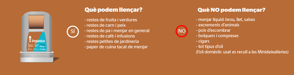 Els establiments han de deixar el contenidor marró davant de l'establiment o en el punt establert sense interrompre el pas dels vianants i respectant l’horari de recollida. Un cop el servei realitza el buidat del contenidor, l'establiment entrarà el contenidor per seguir dipositant els residus.