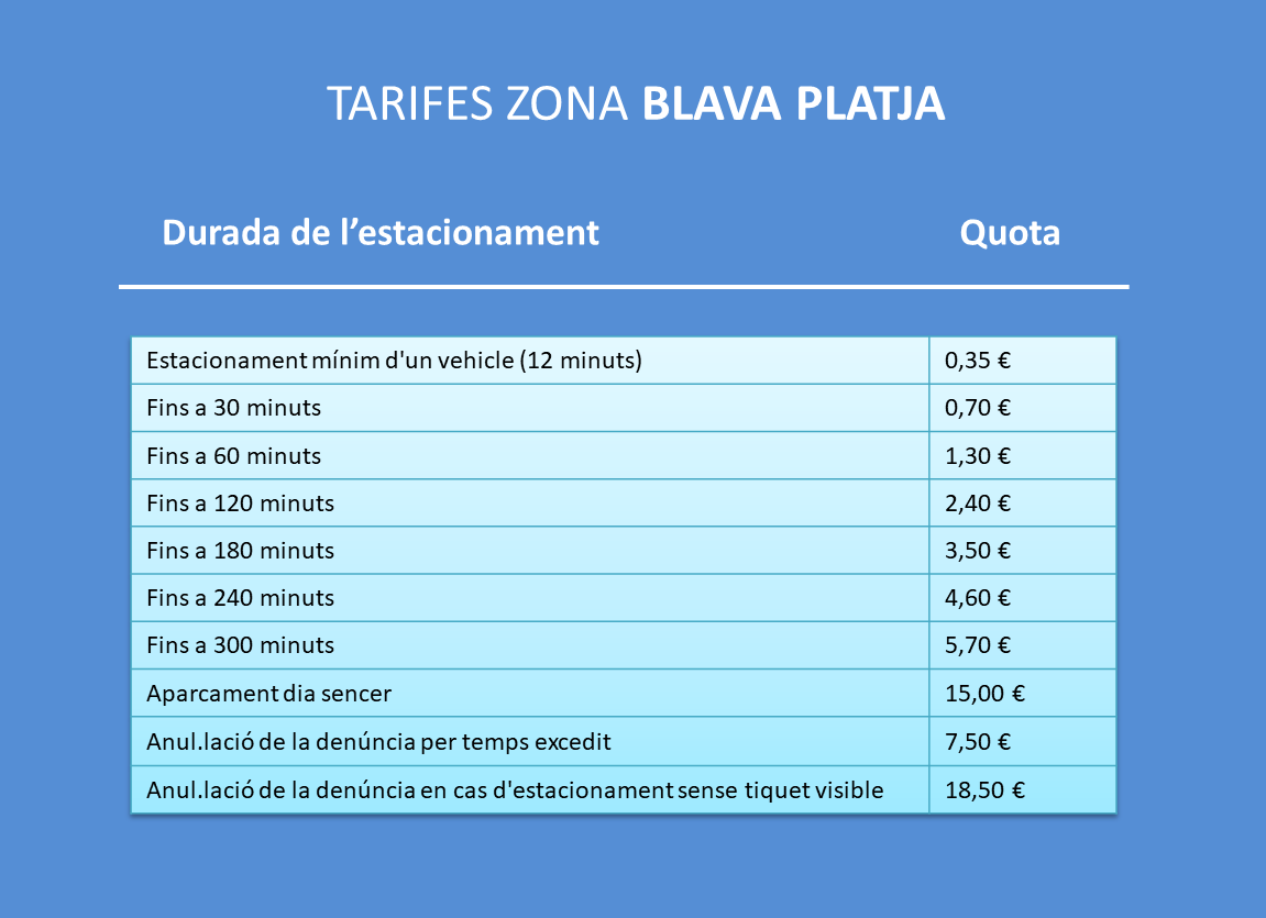 De 01/10 al 30/04: Dissabtes, diumenges i festius de 10:00 a 20:00 hores. Per la resta de dies no especificats, l'aparcament serà gratuït.